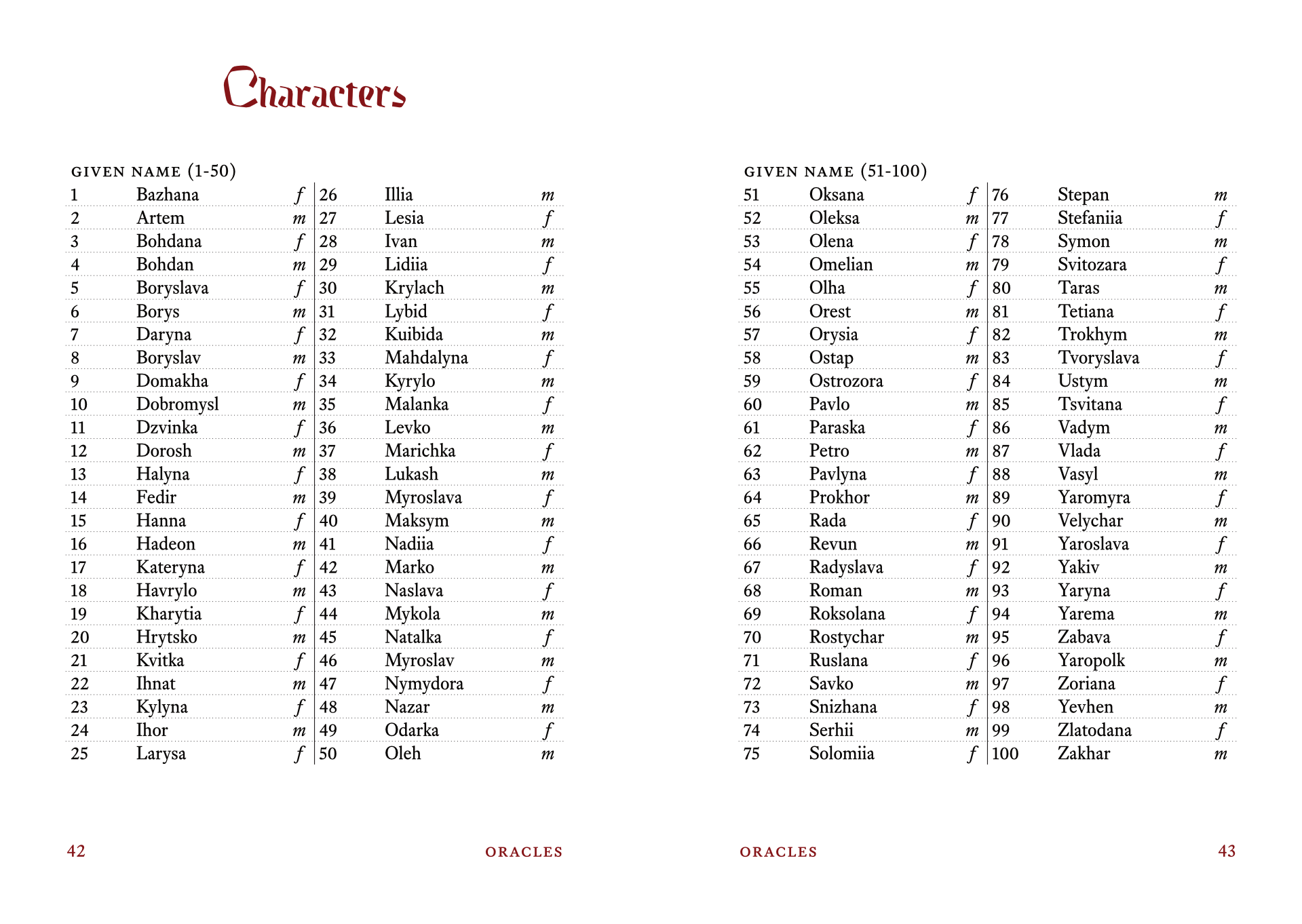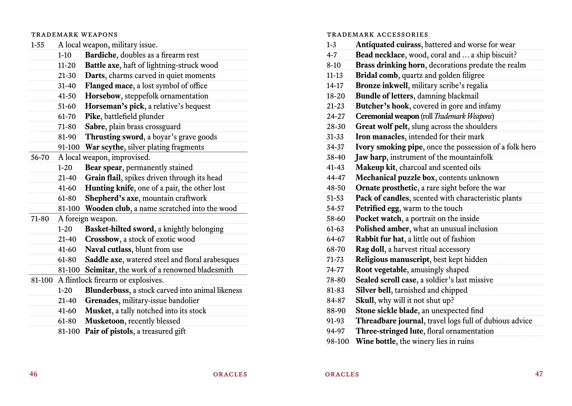 - 12 oracle tables to help you envision characters, settlements and plants found in the Cossack Host dominion